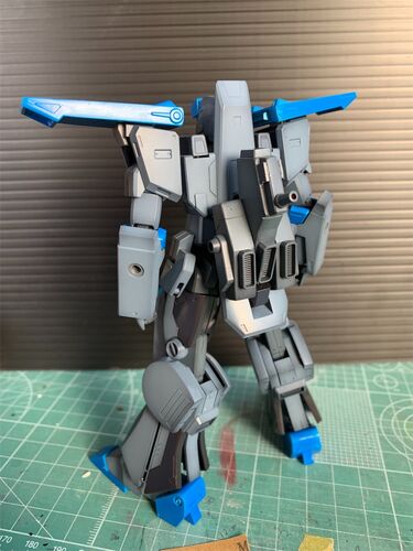 また間が空きました(笑) もー、意を決してザクザク塗っちゃいます 塗ってみたら、まぁこの色グッドですな、と。 MGもこの色にしよ。 塗り分けが必要なパーツ。濃紺と、インディーブルーと。 筋彫りによって、別パーツの様に表現したり、色分けにしたりと。…
