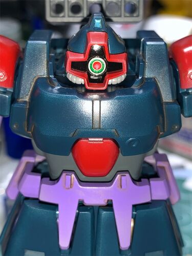 またまた間が空いていますがちゃんと作っています(笑前回からの続き。モノアイは、穴あけの上埋め込みしてみたのですが 塗り分け作業をチョコチョコと繰り返しこんな蛍光ギミックを仕込みました(笑クリアー化して中に仕込む、もいいんですがそれはMGサイズ…